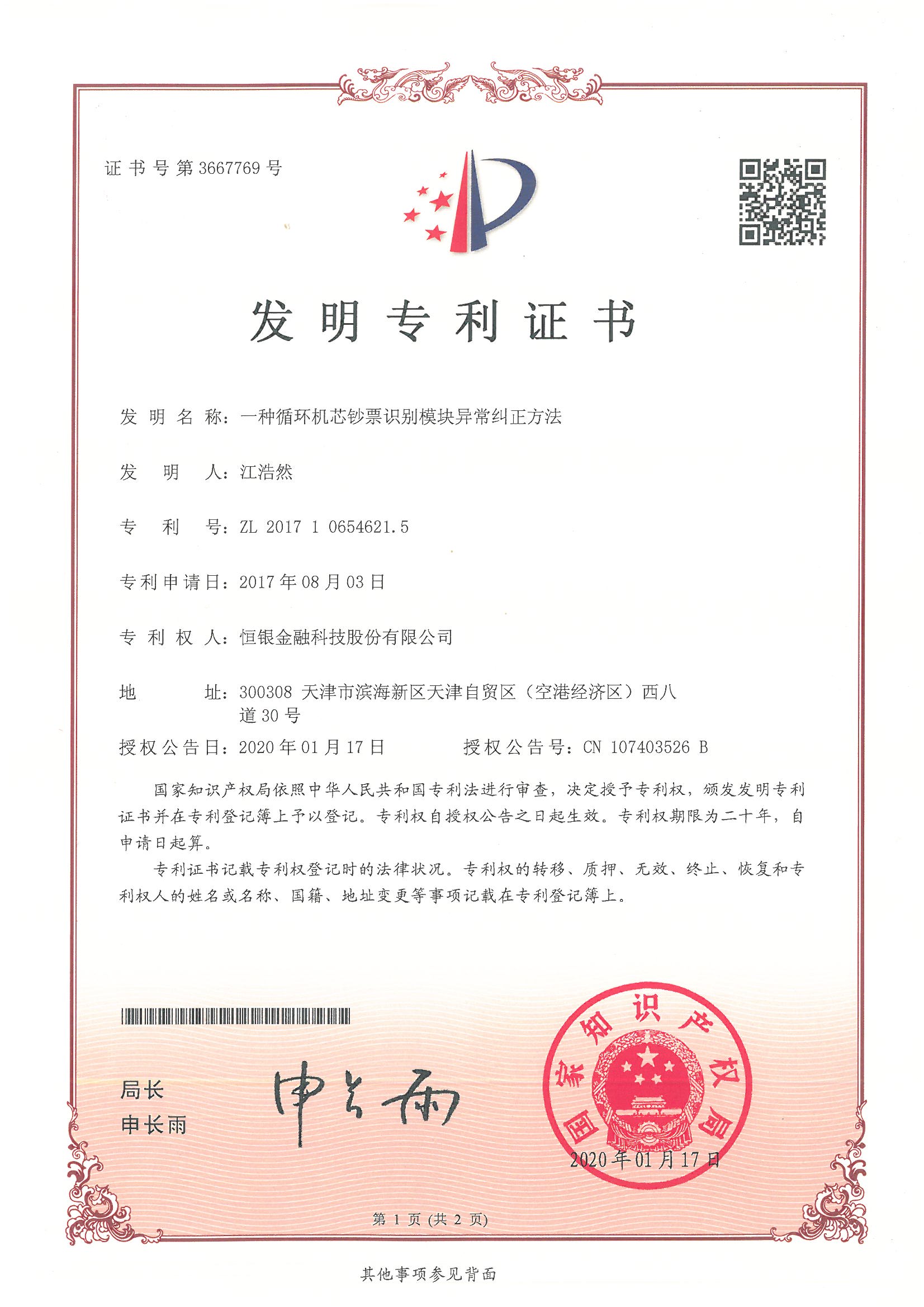 一种循环机芯钞票识别模块异常纠正方法发明专利