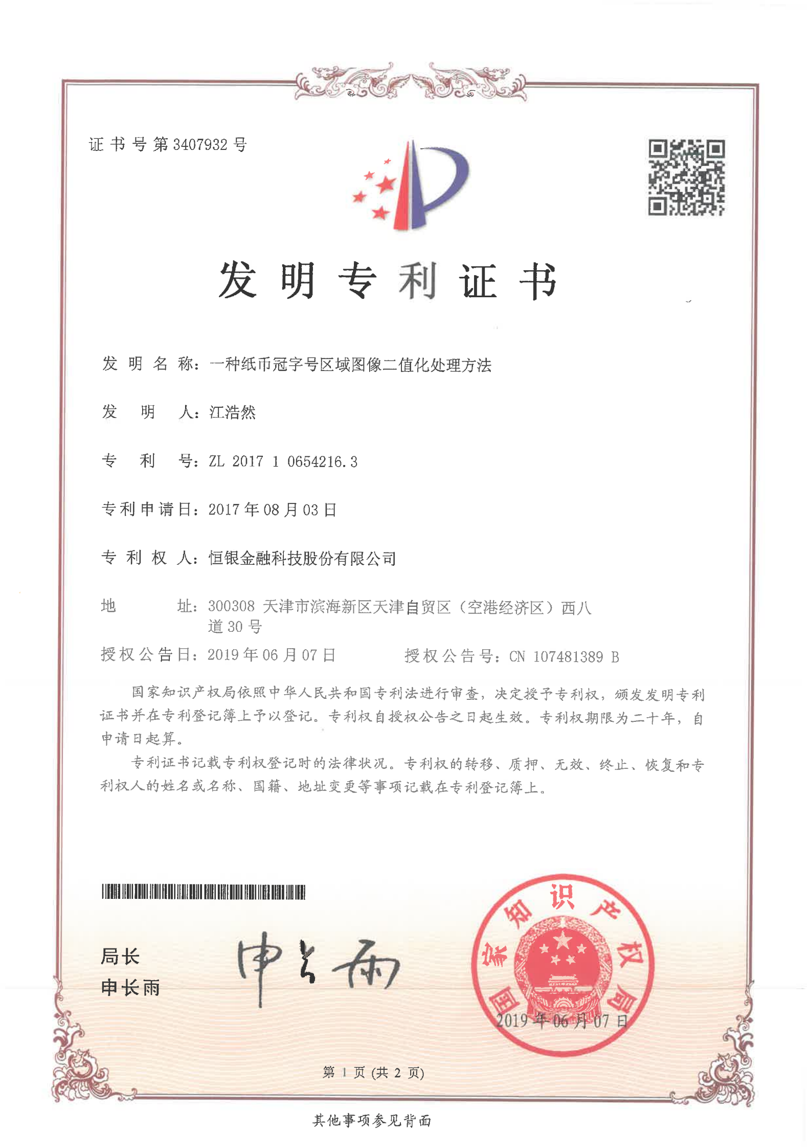 一种纸币冠字号区域图像二值化处理方法发明专利